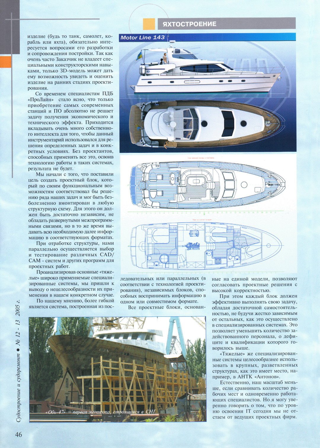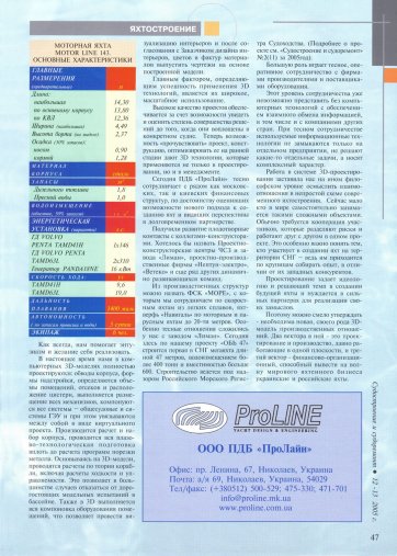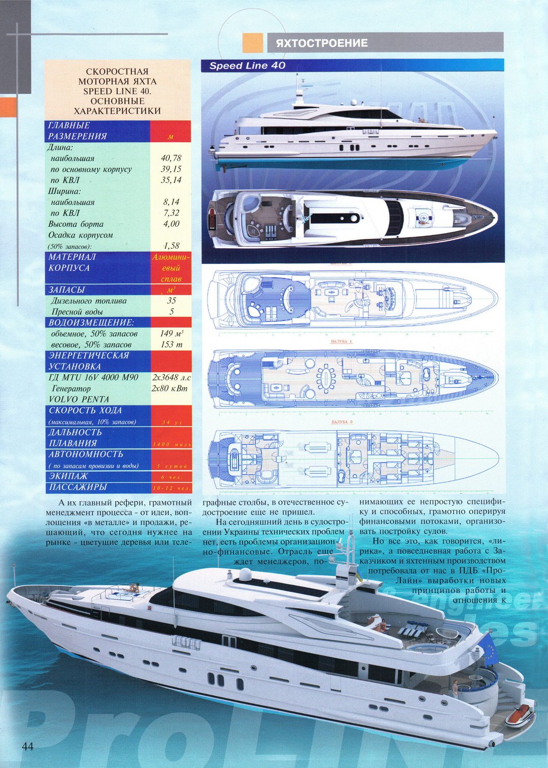 ⠀⠀⠀⠀⠀Из производственных структур можно назвать ФСК «МОРЕ», с которым мы сотрудничаем по скоростным яхтам из легких сплавов, яхт-верфь «Навигаль» по моторным и парусным яхтам до 20-ти метров. Особенно тесные отношения сложились у нас с заводом «Лиман». Сегодня здесь по нашему проекту «ОБЬ 47» строится первая в СНГ мегаяхта длиной 47 метров, водоизмещением более 400 тонн и вместимостью больше 600. Строительство ведется под надзором Российского Морского Регистра Судоходства. (Подробнее о проекте см. «Судостроение и судоремонт» №2(11) за 2005 год).