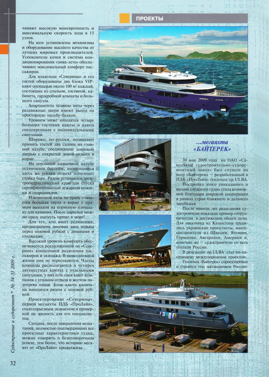 ⠀⠀⠀⠀⠀В конце декабря 2008 года успешно прошла испытания и передана российскому заказчику «Северина» — разработанная в ПДБ «ПроЛайн» мегаяхта пр. Обь-47.