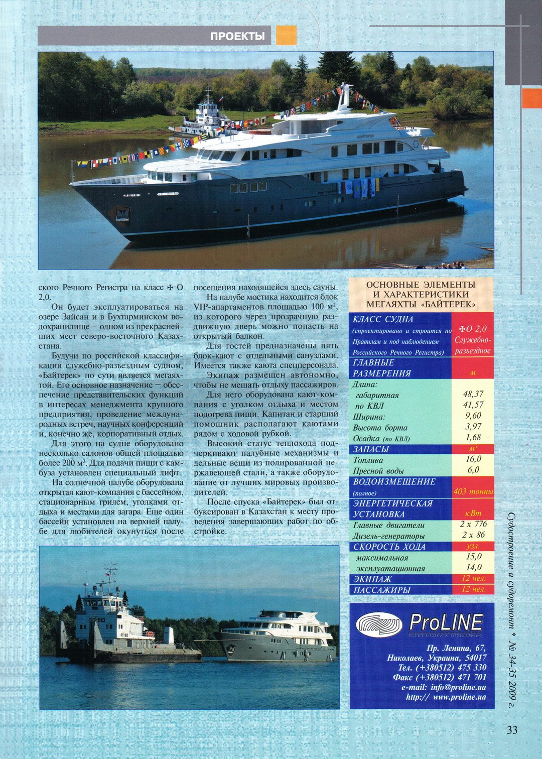 ⠀⠀⠀⠀⠀30 мая 2009 года на ОАО «Самуський судостроительно-судоремонтный завод» был спущен на воду «Байтерек» — разработанный в ПДБ «ПроЛайн» теплоход пр.ULBA.