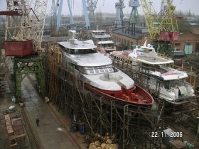OB47 project mega yacht - "Severina" was handed over to the Russian Customer at the end of July 2008 . The yacht was designed and built under the supervision of the Russian Maritime Register of Shipping for class KM ⍟ Ice1 R2-RSN, and having a capacity (GT) of more than five hundred, fully complies with the requirements of the SOLAS 74 and MARPOL 73/78 conventions. This is the highest degree of quality and reliability of a yacht as a vessel.