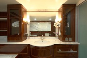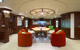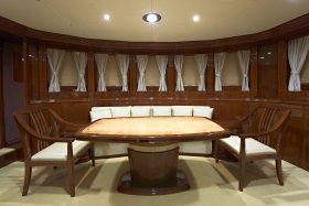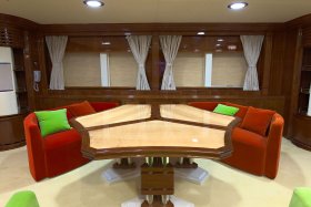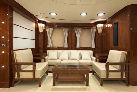 The interior of the yacht, decorated in a classic style - this is a bright room, radiating peace and comfort. Such an interior is not excessive, not overloaded with details, full of restrained dignity, each element of the interior seems especially significant, and the space of the premises is perceived as a harmonious whole. The main feature and the key idea of the Baiterek motor vessel is the continuity in the modern interpretation of the wise centuries traditions, the rational use of classical national motifs, as a symbol of the pride and identity of the people in the complex modern world.