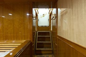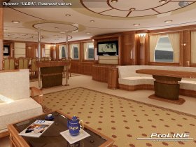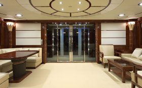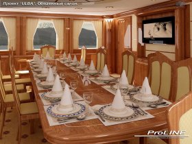 To do this, the vessel has several salons: - dining, main, fore, saloon on the bridge deck and the large mess room for passengers - with total area of over two hundred square meters. There is a special elevator for serving food from the galley to the salons. The special elevator for food delivery from the galley to the salons is installed.
