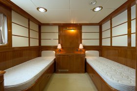 The concept of separation of passengers and crew is implemented on the yacht. In everyday life, they do not overlap. The crew is located in three double cabins. The bathroom unit equipped with a washing and drying machine is provided for them. Also provided the crew cabin with a seating area and a place for heating food. For the captain and the captain's senior assistant, cabins are provided near the wheelhouse.