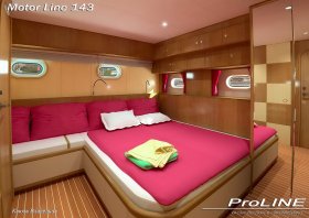 The engine room contains in standard version the main engine VOLVO PENTA TAMD41H with power of 146 Hp, diesel generator set with power up to 16 kW and all necessary equipment for operation of ship systems. The built-in fuel tanks are also here. The boat can be equipped with climate control system by Customer wish.