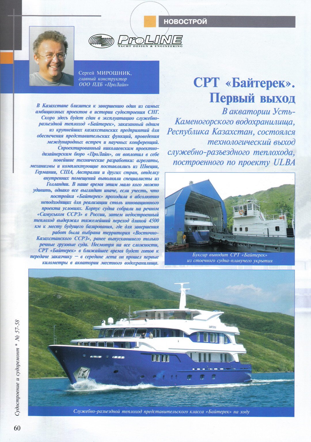 В Казахстане завершается достройка уникального служебно-разъездного теплохода, спроектированного украинским проектно-дизайнерским бюро «ПроЛайн»