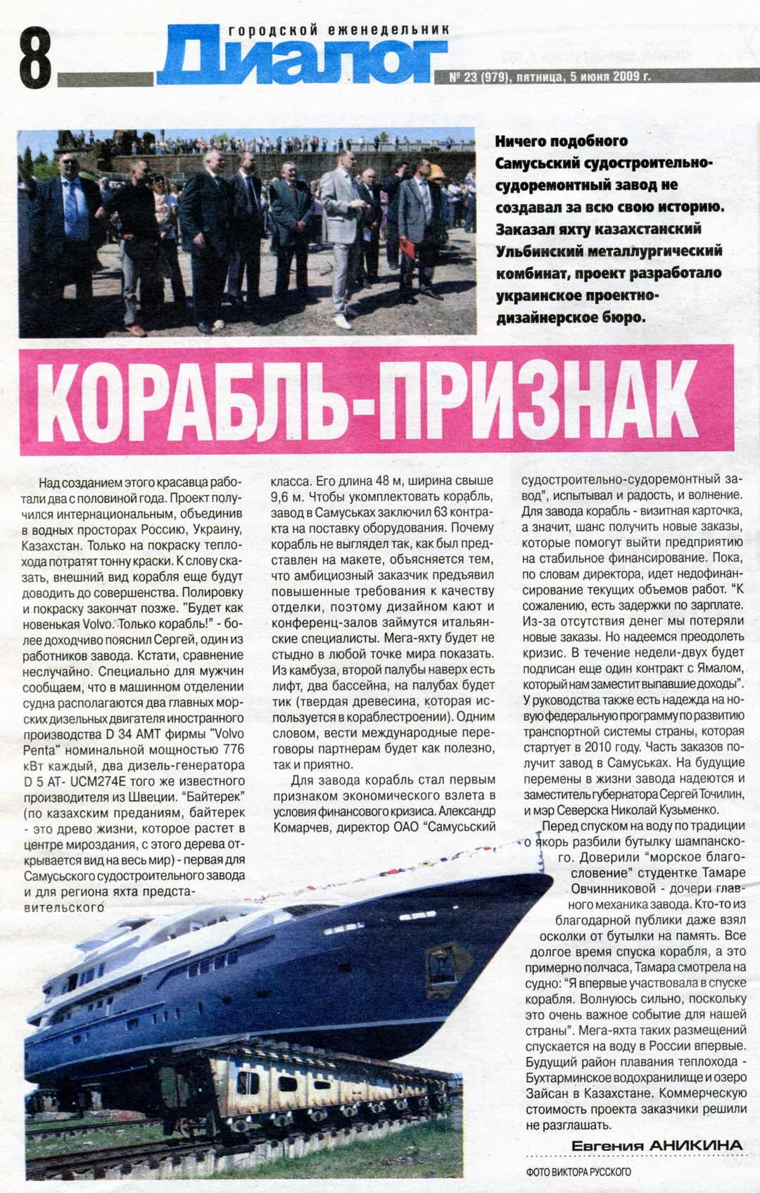 ⠀⠀⠀⠀⠀Ничего подобного Самусьский судостроительно-судоремонтный завод не создавал за всю свою историю. Заказал яхту казахстанский Ульбинский металлургический комбинат, проект разработало украинское проектно-дизайнерское бюро.