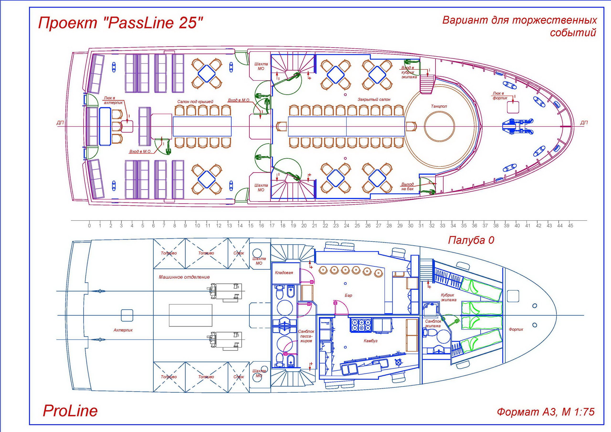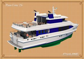 Проект PassLine25 представляет собой пассажирское судно, предназначенное для обеспечения морских и речных пассажирских перевозок на внутригородских и пригородных линиях, организации туризма и активного отдыха на воде, обеспечение круизов и торжественных событий.